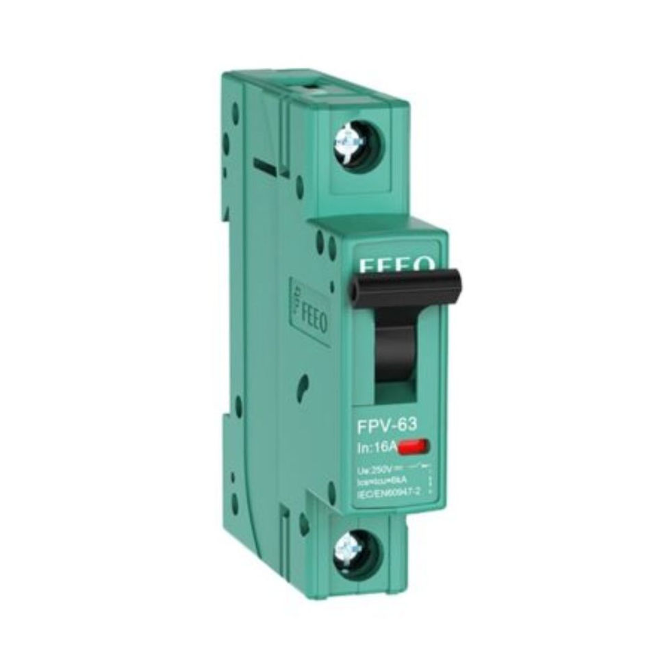 Voltaje nominal: 250VDC, Corriente nominal: 50A, Número de polos: 1P o 2P (según configuración), Capacidad de ruptura: 6kA, Tensión de impulso: 4kV, Tipo de conexión: C, Curva: C, Sección conductor: 10–35mm², Voltaje de aislamiento: 1200VDC, Aplicación: Protección de sistemas solares fotovoltaicos en corriente continua.