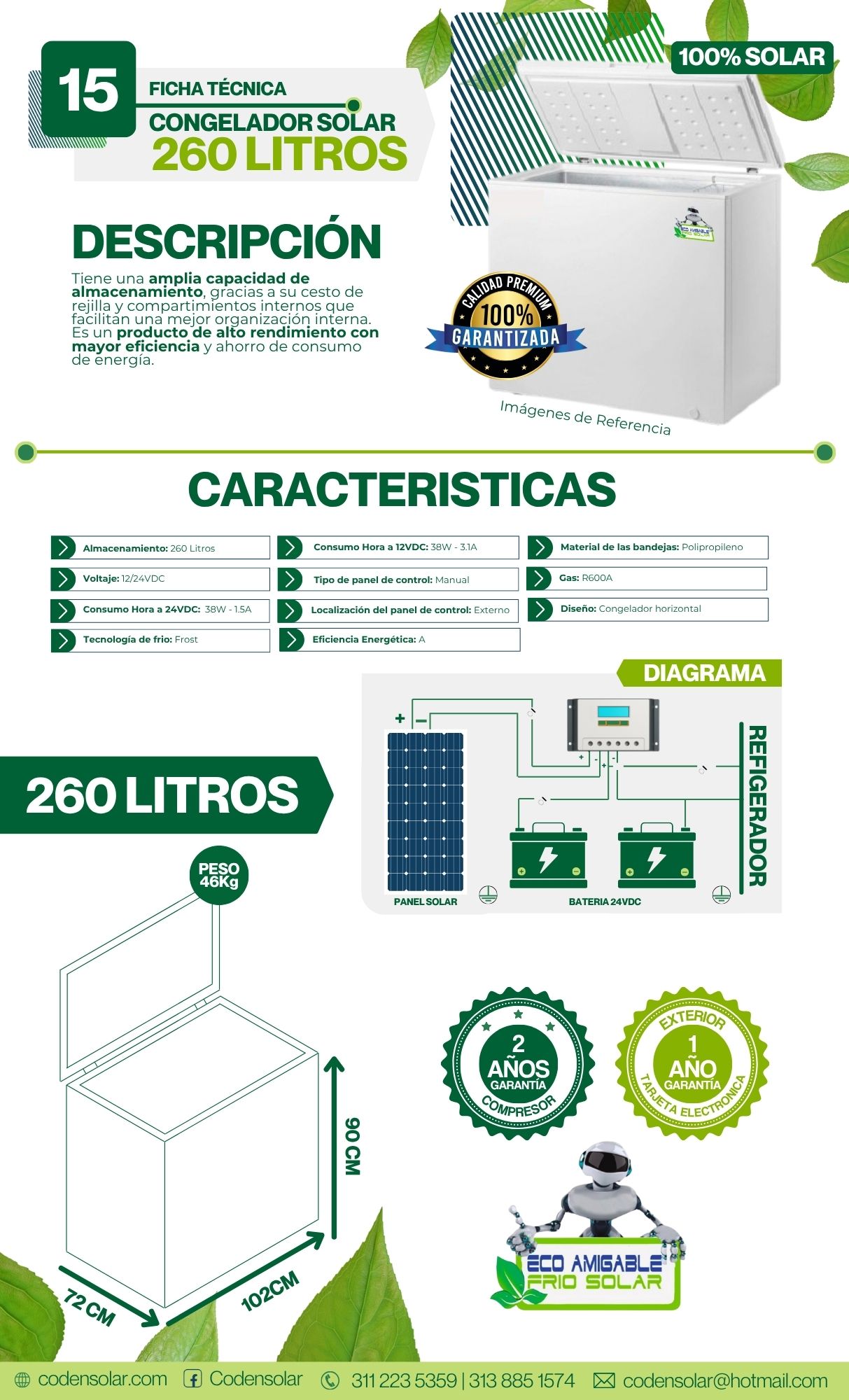 CONGELADOR SOLAR 12/24V 260 LT ECO AMIGABLE /40WHORA