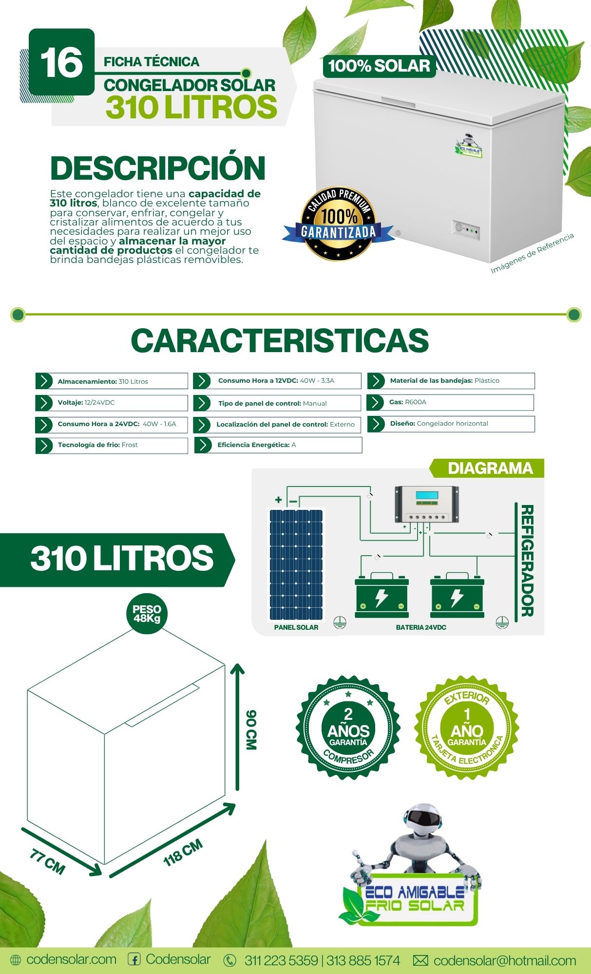 CONGELADOR SOLAR 310LT ECO AMIGABLE/ 40 WHORA