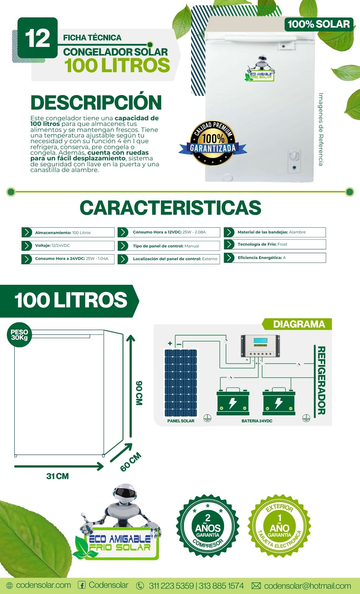 CONGELADOR SOLAR HORIZONTAL 100 LT ECO AMIGABLE/ 25WHORA