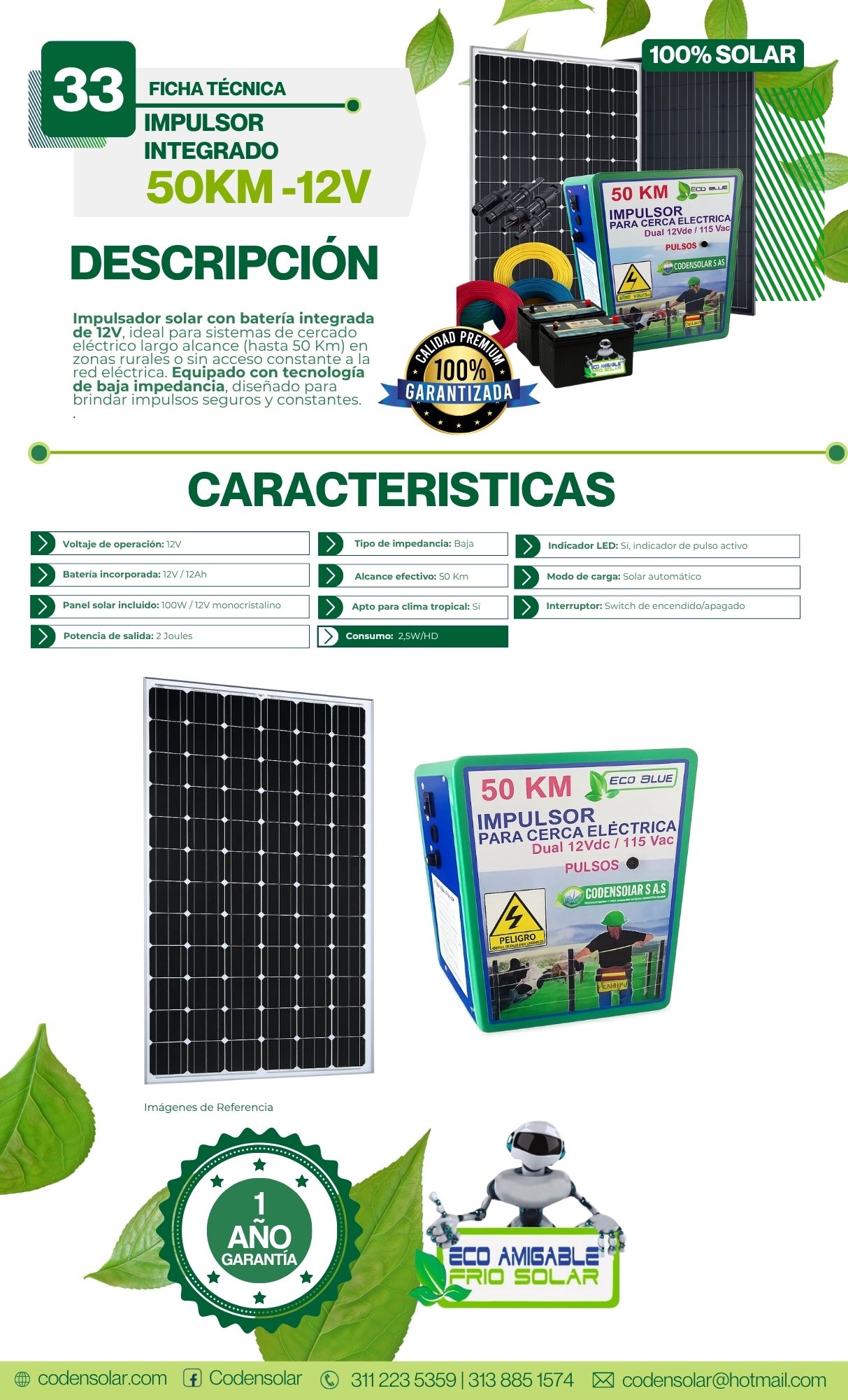 El Impulsor Dual Eco Amigable 200KM es un equipo versátil que puede operar con alimentación de 110V AC o 12V DC, ideal para cercas eléctricas en zonas rurales o mixtas. Su diseño permite el funcionamiento continuo con red eléctrica o batería externa, ofreciendo una solución práctica y eficiente. Con una potencia de salida de 2.0 Joules y tecnología de baja impedancia, garantiza impulsos eléctricos seguros y constantes. Incluye indicador LED de pulso activo, bajo consumo energético y es apto para climas tropicales, con alta compatibilidad para diferentes tipos de instalación.