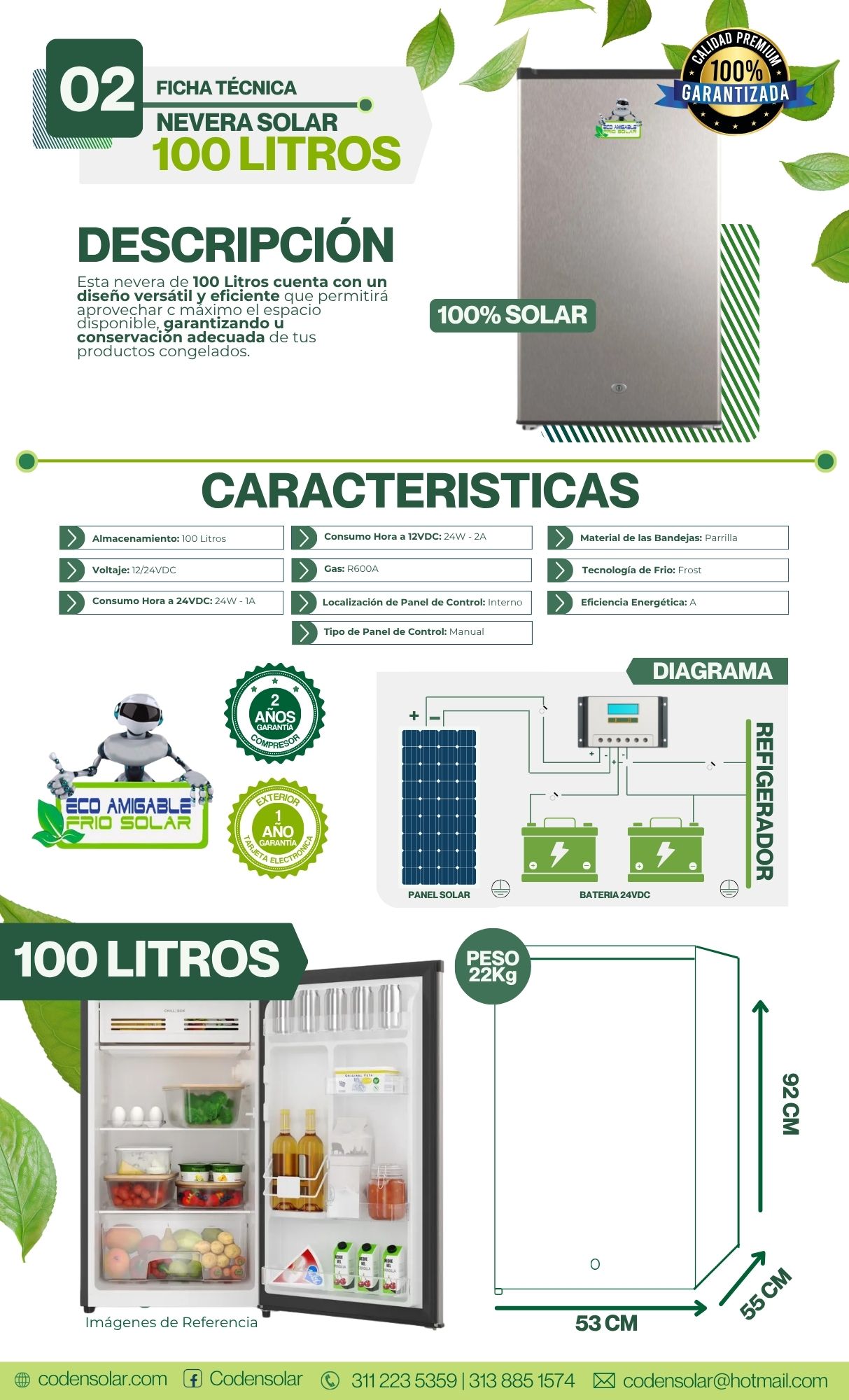 NEVERA SOLAR 100 LT ECO AMIGABLE/24WHORA