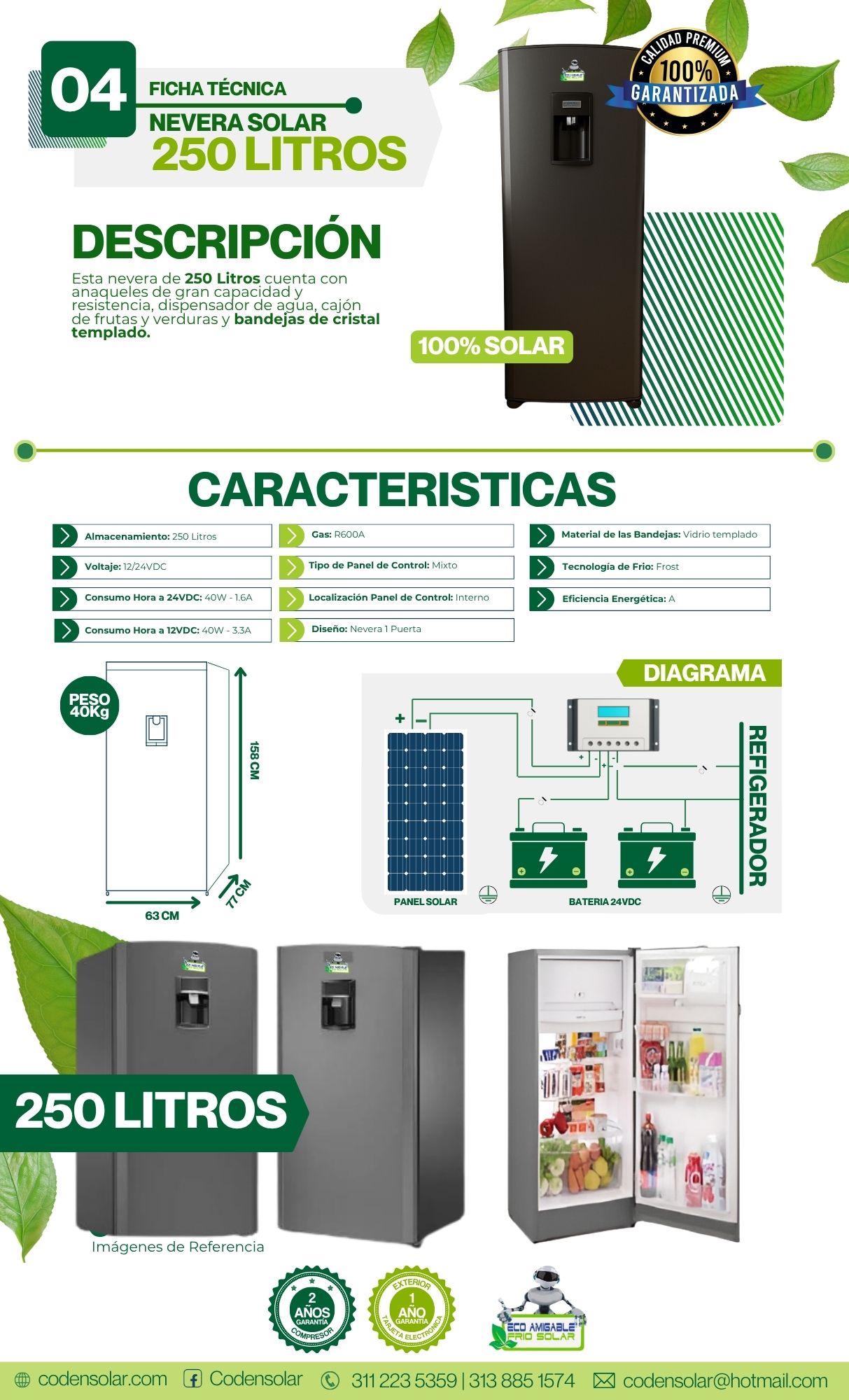 NEVERA SOLAR 250 LT ECO AMIGABLE 31wh